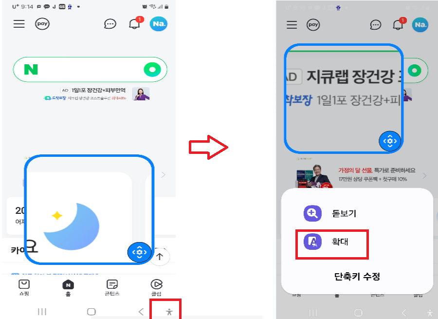 기존에 캡쳐해서 확대해서 보거나, 돋보기앱 설치해서 사용했는데 갤럭시 핸드폰에 기본사양으로 있는[확대 및 돋보기] 기능이 훨씬 편리해서 소개해드립니다. [사람아이콘]만 클릭하면 바로 확대 가능합니다!