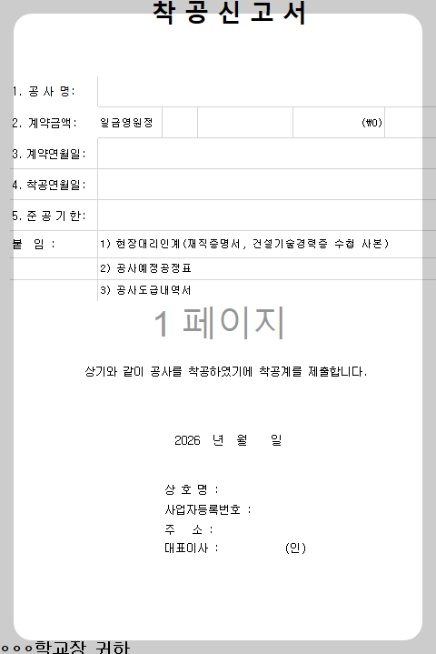 학교에 제출하는 착공서류는 아래와 같습니다.