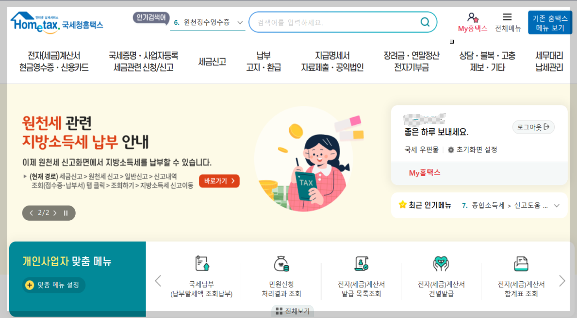 홈택스 로그인 → 전자세금계산서. 현금영수증. 용카드 → 전자세금계산서발급 → 메일 발송 → 메일발송목록 조회 및 재발송